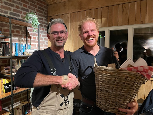 Ook Emil wordt hartelijk bedankt voor zijn presentatie met een mooi mand.